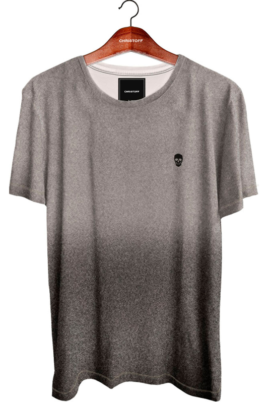 Camiseta Gola Básica - Spray Degradê Nude 100% algodão. Cor crua e spray em preto. Bainha nas mangas e na barra. Beneficiada com uma técnica super diferenciada técnica a qual deixa a peça com um aspecto degradê. Logo caveira aplicada através de "serigrafia toque zero" preto.